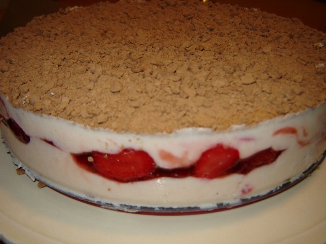 עוגת גבינה קרה גבינה עם תותים