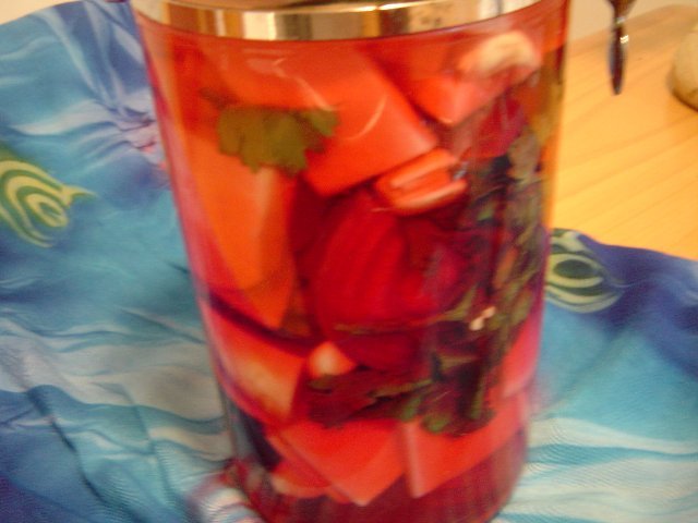 סלק פרוס לפרוסות גדולות ….הוא ייתן את הצבע האדום במים.