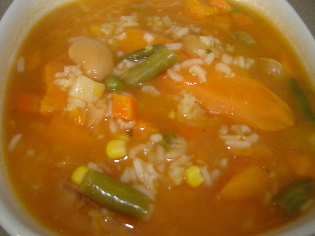 מרק עשיר במגוון ירקות , עגבניות,גרגרי חומוס ואורז.