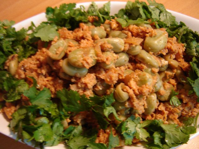 יוצקים לצלחת הגשה ומפזרים את כל הכוסברה מעל