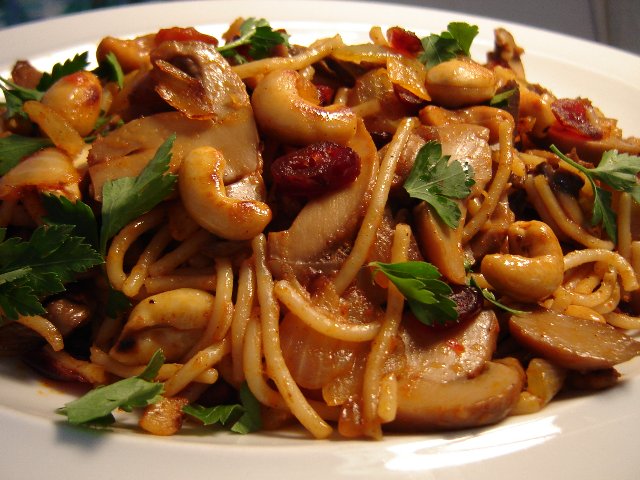 פסטה ופטריות בנגיעות קשיו וחמוציות