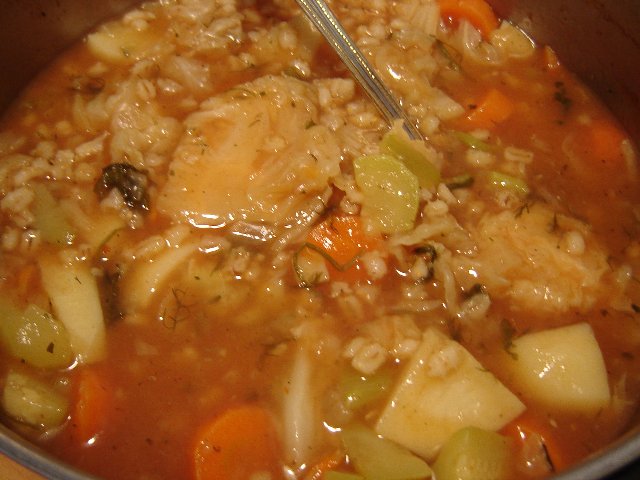 מרק עגבניות עם כרוב ירוק גריסים וירקות