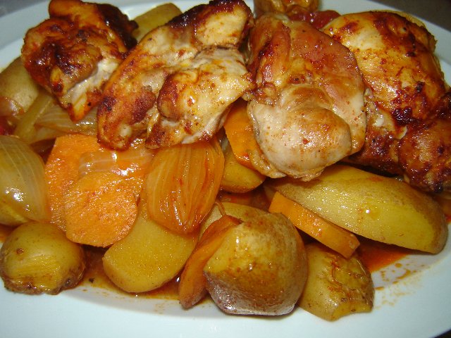 רק שזה היה בתנור מעל שעתיים ורבע עד שיתרככו הפרגיות ,(להבא אחתוך לחצי הגודל.)